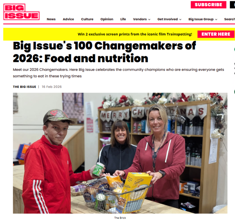The Brick has been announced as a Big Issue Changemaker 2026, recognised for its impact and leadership in food and nutrition.